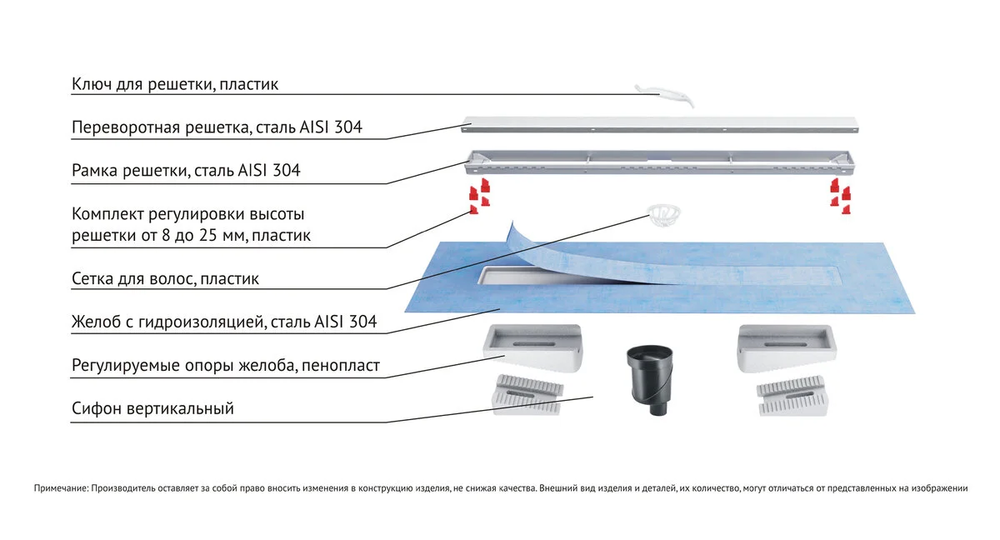 - Усовершенствованная система настройки высоты изделия позволяет выполнить легкую регулировку под заданную толщину покрытия, с минимальной высотой монтажа (заливки) - 65мм.