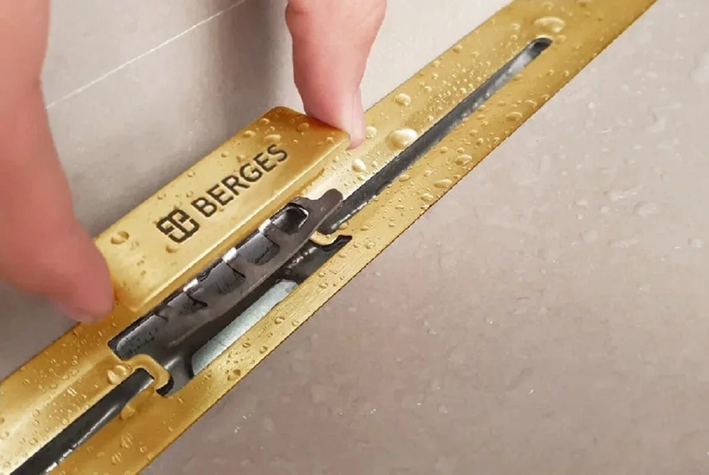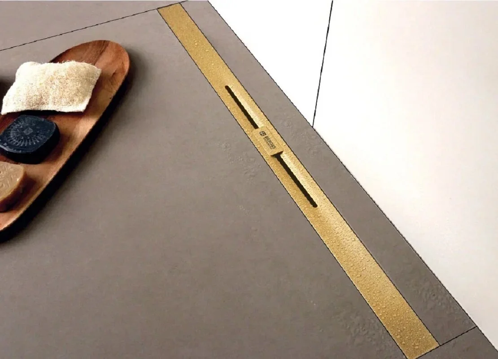 Дренажный канал Berges Simpel 600 092011, 60 см, выпуск вертикальный, цвет золото глянец