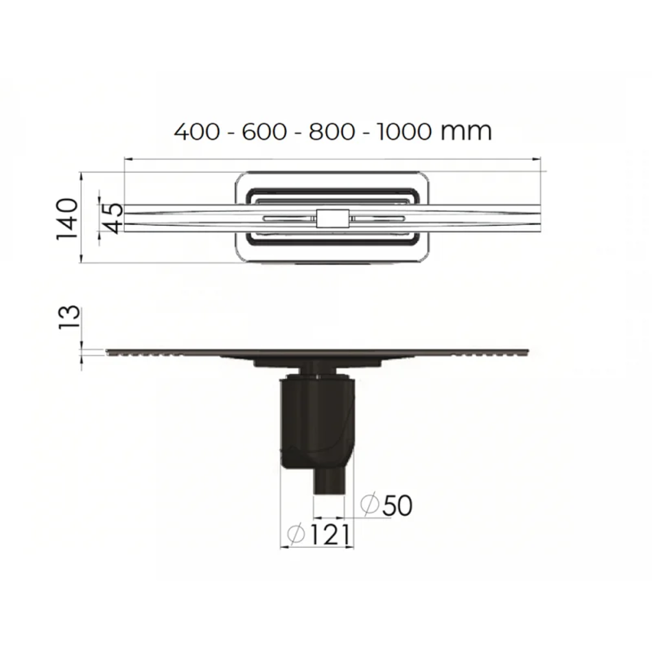 - Вертикальный выпуск D50/105 H50, пропускная способность 48 л/мин, монтаж 360°