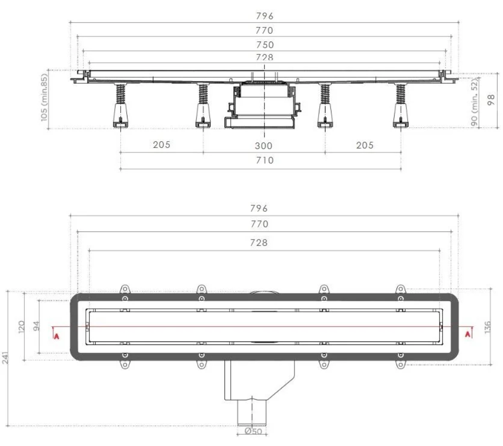 - Нагрузка на решетку (в соответствии с EN 1253) – выдерживает до 300 кг давления (класс K3);