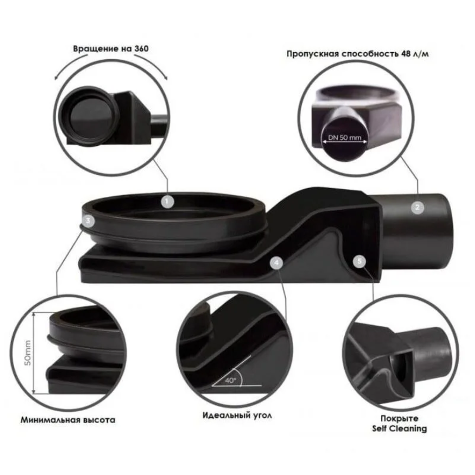 - Материал: нержавеющая сталь AISI 304 SS – дизайн-вставка, рамка; ABS – корпус; PP – переходник, сифон, грязеулавливающая сеточка, сухой затвор.