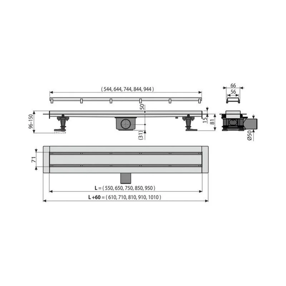 Дренажный канал Kerama Marazzi APZ13-DOUBLE9-750KM, решетка под плитку, double, нержавеющая сталь, цвет хром