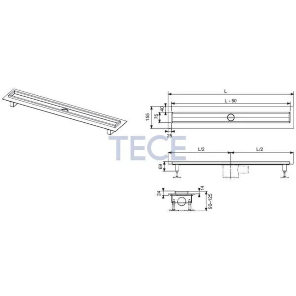 Дренажный канал прямой Tece арт. 601500 с гидроизоляцией Seal System, 1500 мм