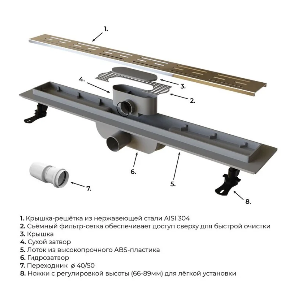 - Затвор трапа: комбинированный - сухой затвор / гидрозатвор