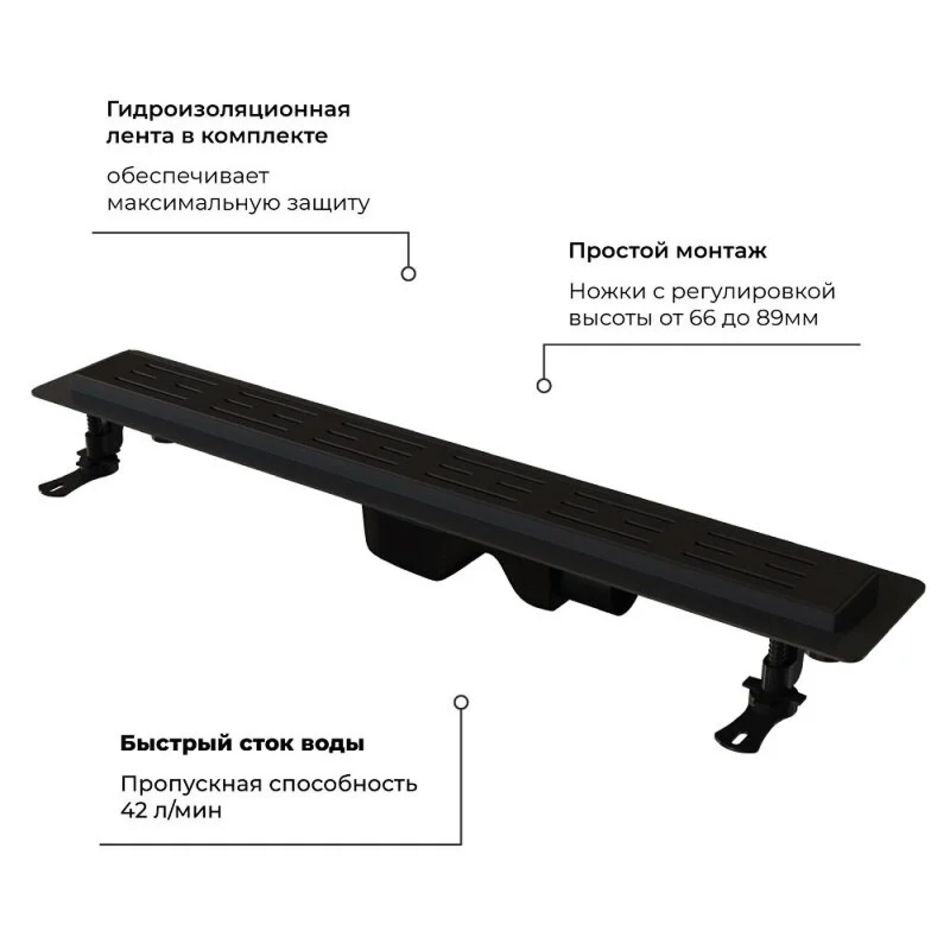 Дренажный канал RGW Drain Leo-30-60 60213060-04, 60 см, с решеткой из нержавеющей стали, черный
