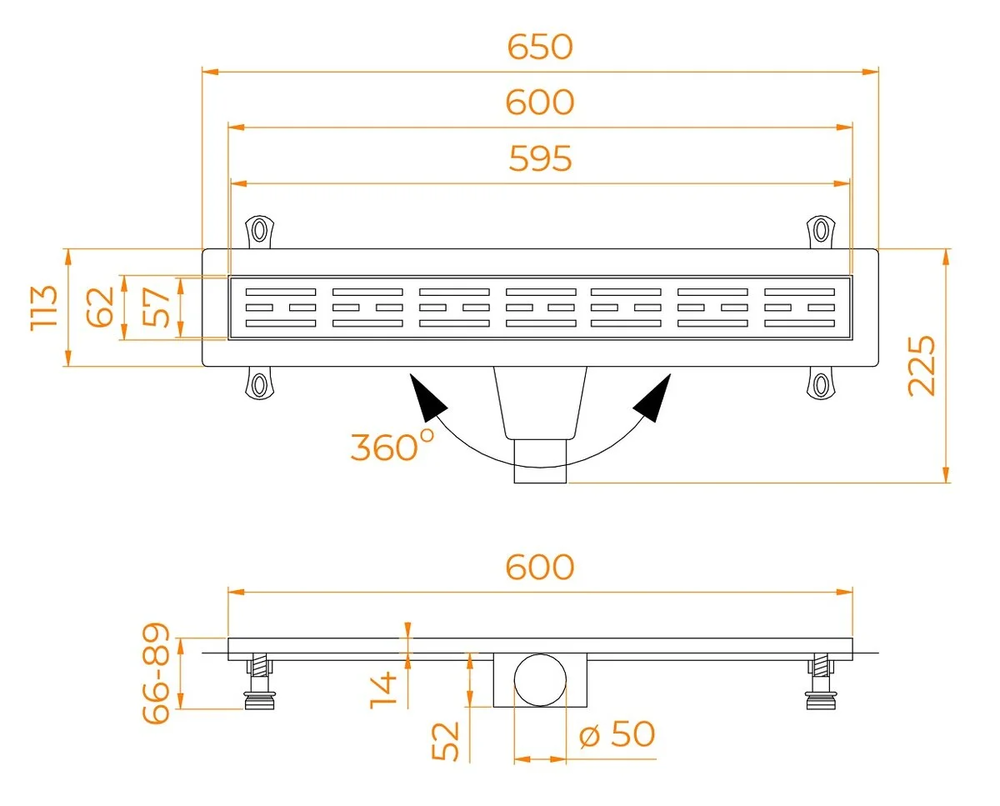 - Диаметр слива: 50 мм