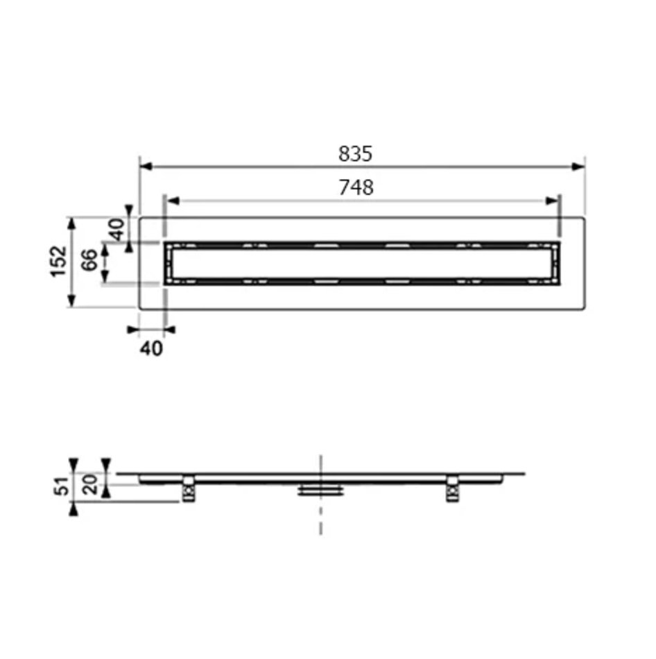 Ширина непрерывной щели по периметру слива: 6–8 мм