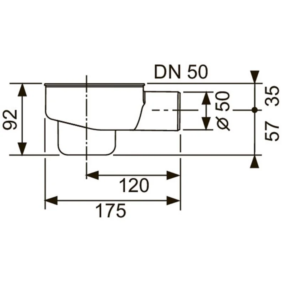 - Сифон DN 50, выход вбок, производительность (согласно DIN EN 1253) при уровне воды 10/20 мм над решеткой: 0,7/0,8 л/с; высота гидрозатвора = 25 мм согласно DIN EN 1253;