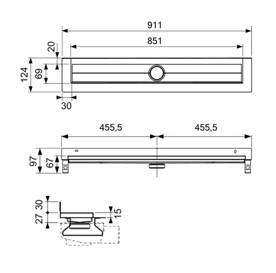 Дренажный канал TECEdrainline 600901 для пристенного монтажа, 90 см