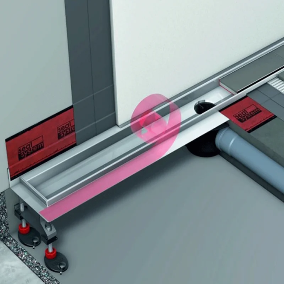 - Дренажный канал для пристенного монтажа, с фланцем и гидроизоляционной манжетой Seal System