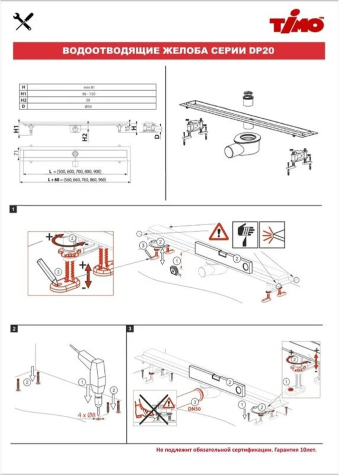 Внимание! Минимальная высота монтажа 95 мм (от чернового пола до уровня чистового покрытия)