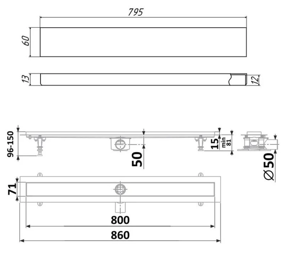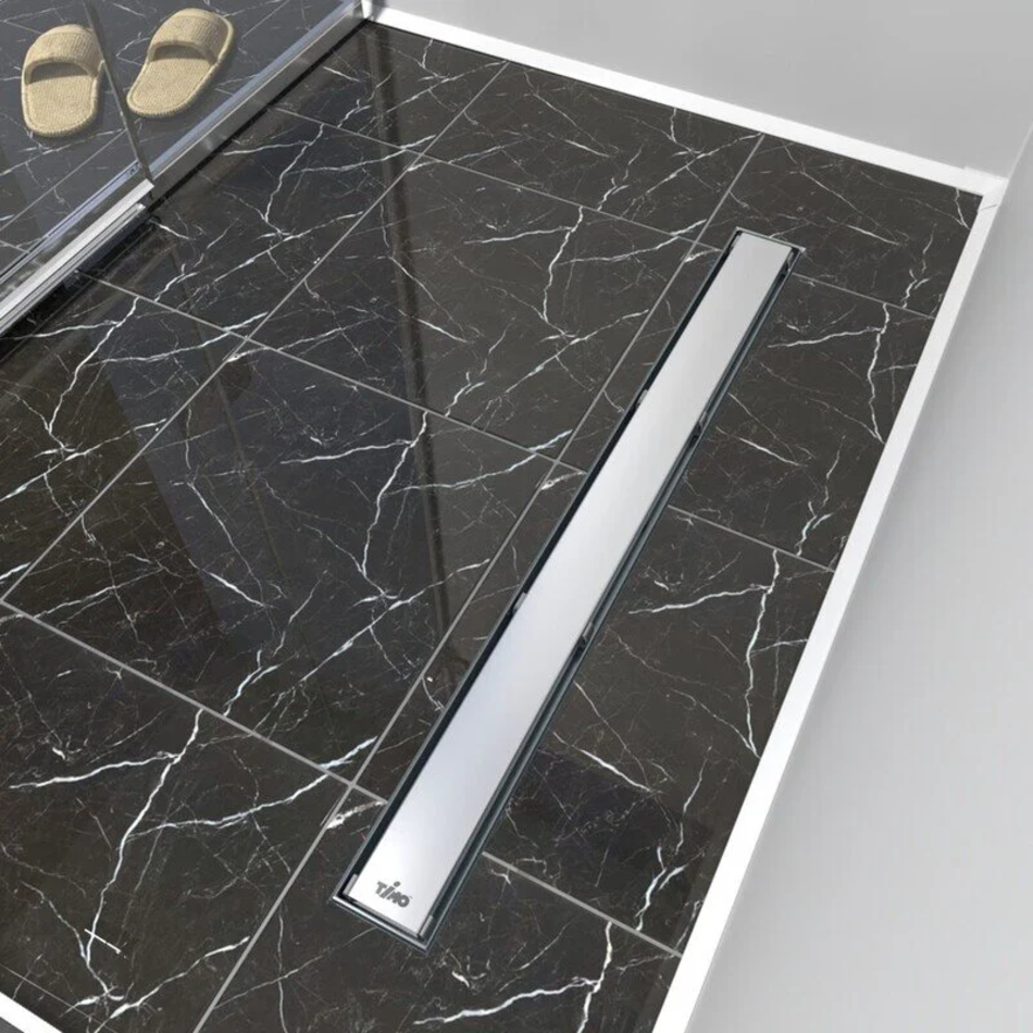 Дренажный канал Timo Drain Protect DP20800-PG20800, 80 см, с двусторонней панелью PG20 под плитку, цвет сатин