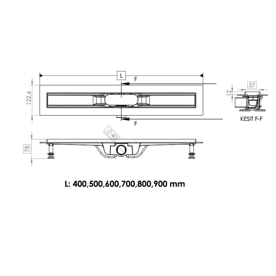 Дренажный канал Timo Smart 70 см с решеткой Double Gap под плитку, цвет сталь, SM-DGG70-LS40(DRY)