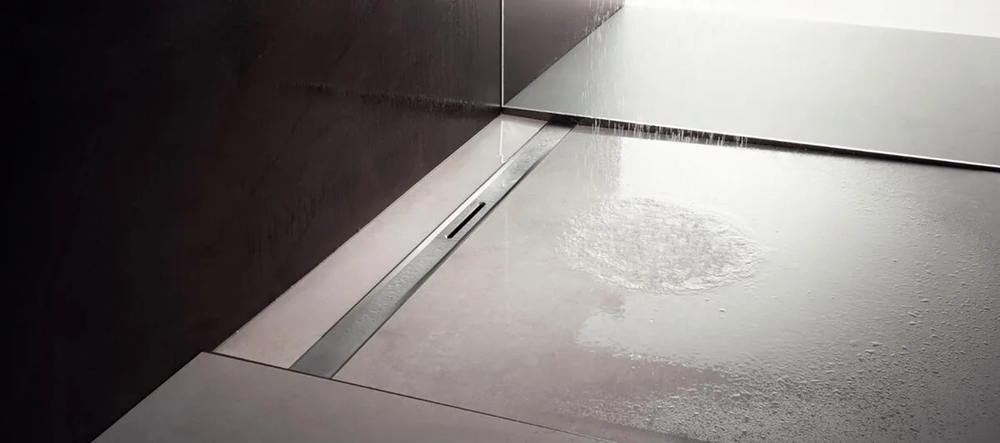 Комплектация: профилированный корпус душевого лотка, вкладка, гидрозатвор, монтажный фланец, уплотнительная манжета, предварительно установленная на заводе, компенсатор высоты, отводящий патрубок, сетчатый фильтр, комплект креплений.