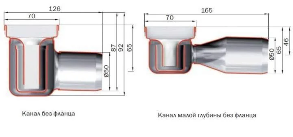 - С гидрозатвором (сифоном) без фланца, длиной 68.5 см, высотой 9.2см