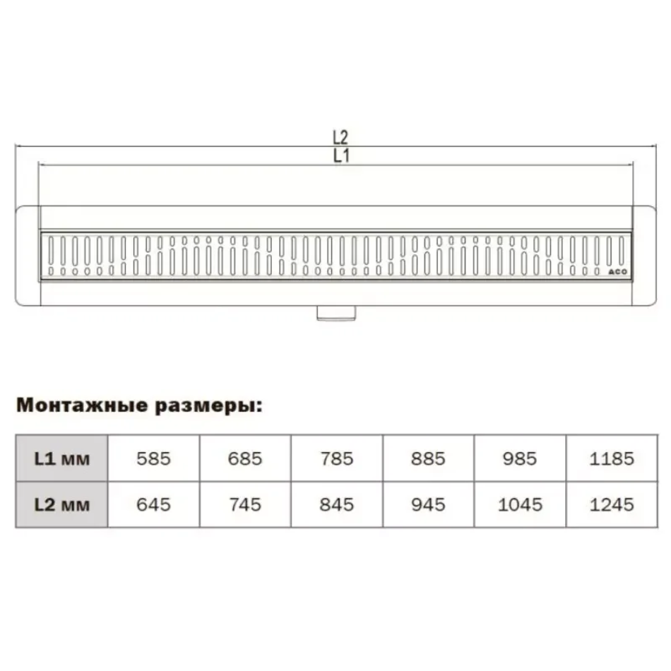 - Канал и решетка выполнены из нержавеющей стали AISI 304