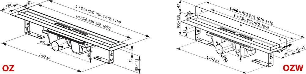 В случае комбинации душевой кабины с дренажным каналом необходимо учитывать размеры отдельных изделий. Точные размеры душевых кабин можно найти на отдельных продуктах в техническом паспорте.