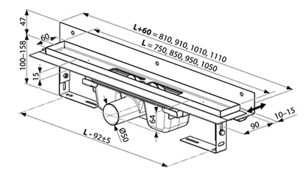 В случае комбинации душевой кабины с дренажным каналом необходимо учитывать размеры отдельных изделий. Точные размеры душевых кабин можно найти на отдельных продуктах в техническом паспорте.