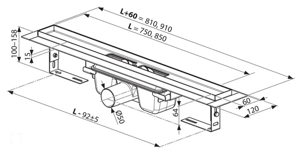 - Высота гидрозатвора: 50 мм