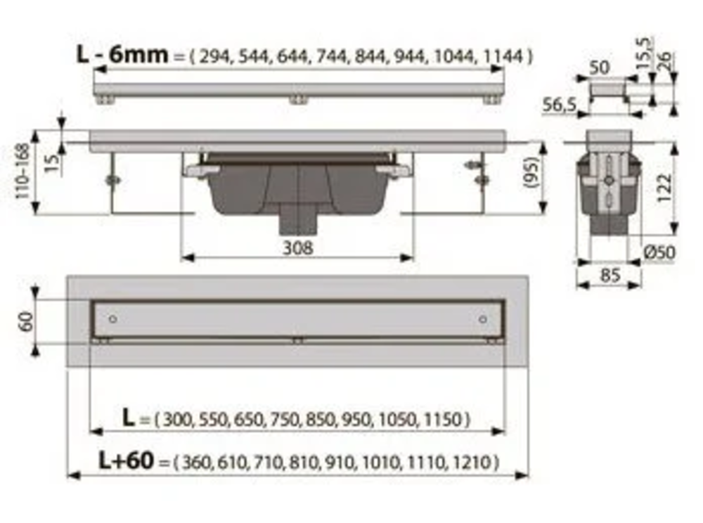 APZ1007-950 Floor СНИЖЕННЫЙ ВОДООТВОДЯЩИЙ ЖЕЛОБ С ПОРОГАМИ ДЛЯ РЕШЕТКИ, ПРЕДНАЗНАЧЕННОЙ ДЛЯ КЛАДКИ ПЛИТКИ, С ВЕРТИКАЛЬНЫМ СТОКОМ