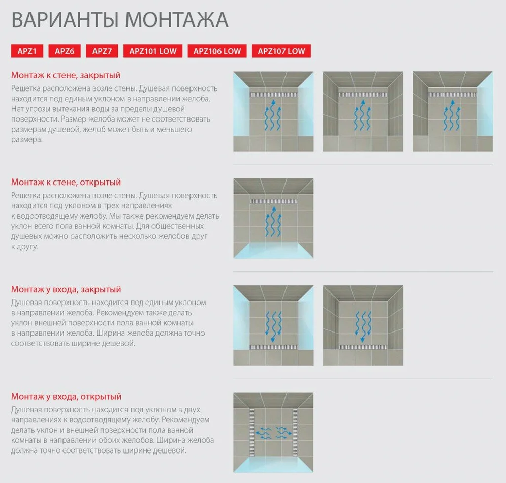 APZ107-950 Floor Low ВОДООТВОДЯЩИЙ ЖЕЛОБ С ПОРОГАМИ ДЛЯ РЕШЕТКИ,ПРЕДНАЗНАЧЕННОЙ ДЛЯ КЛАДКИ ПЛИТКИ