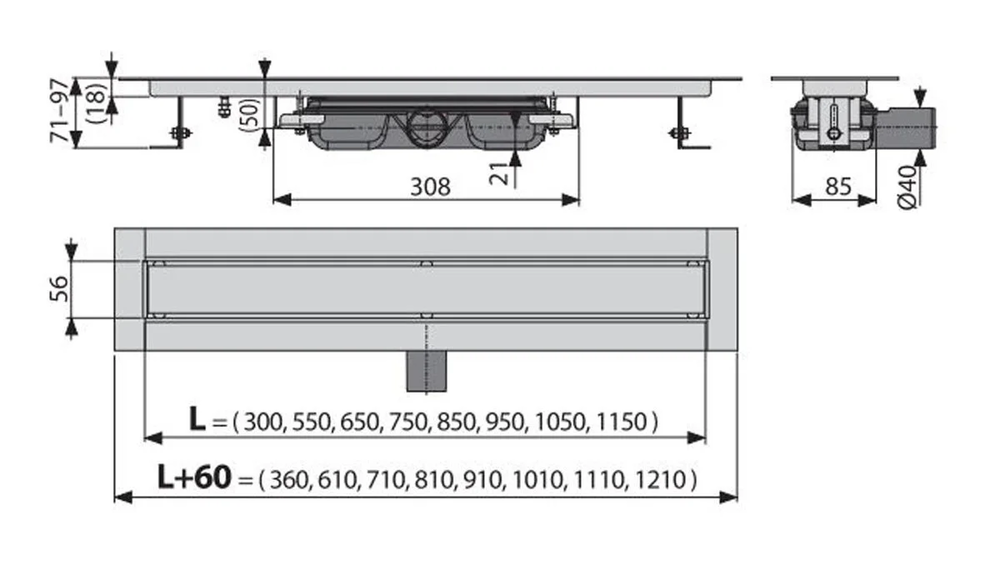 Душевой лоток AlcaPlast APZ115-300 с решеткой под кладку плитки