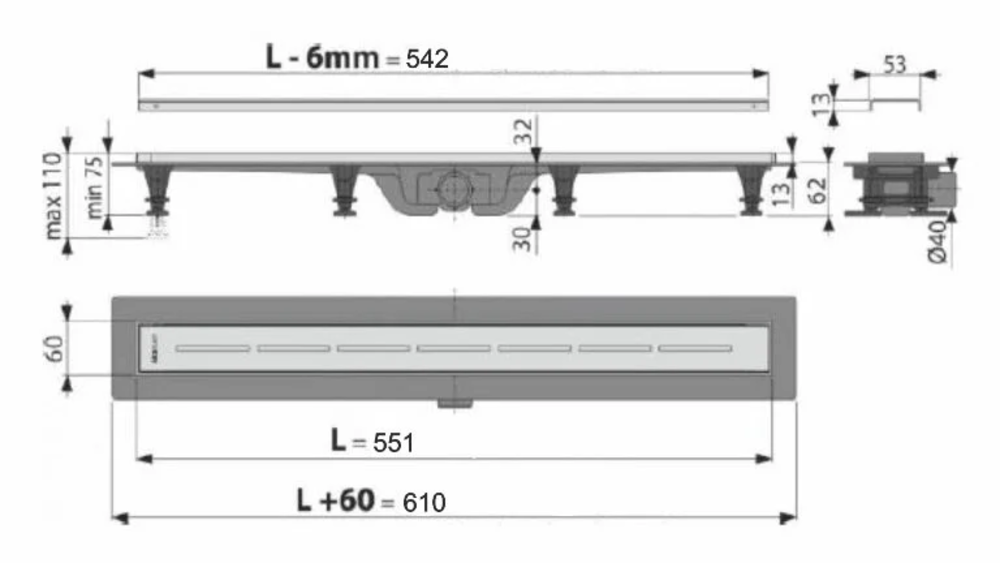 - Регулируемые монтажные ножки 0-35 мм, позволяют быстро и удобно установить желоб и выровнять его в горизонтальной плоскости