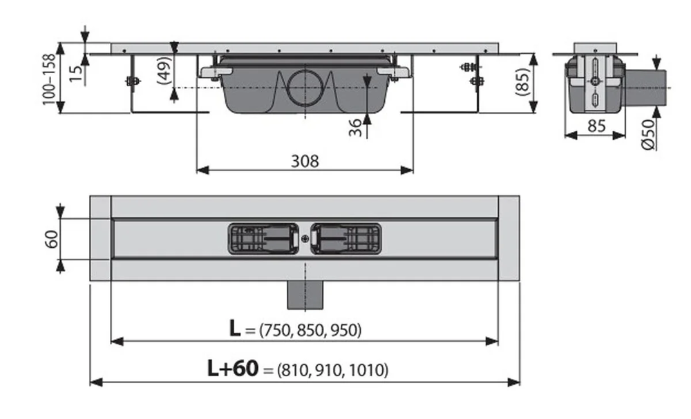 Душевой лоток AlcaPlast APZ1S-850 с порогами для перфорированной решетки