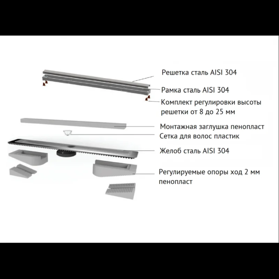 - Регулировка рамки и решетки по высоте от 8 до 25 мм
