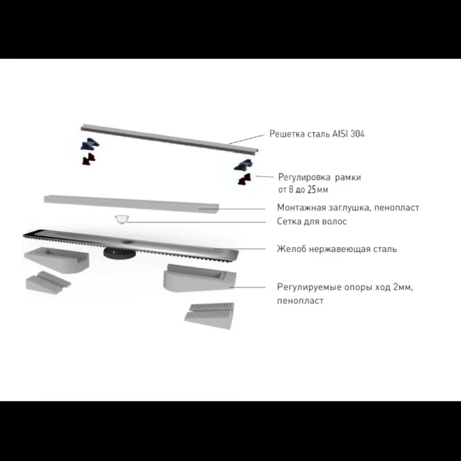 - Двусторонняя установка решетки: металл и вклейка плитки с регулировкой по высоте от 8 до 25 мм