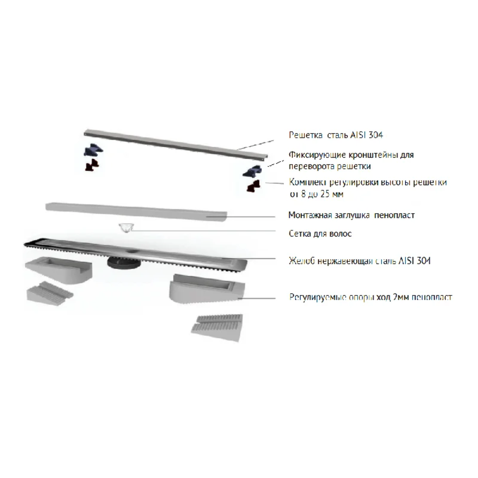 - Решетка и желоб водосток, нержавеющая сталь AISI 304