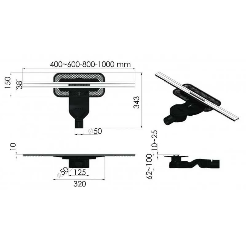 - Решетка-желоб водосток, нержавеющая сталь AISI 304
