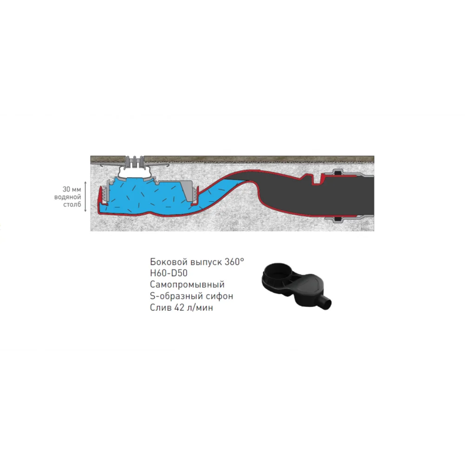 Душевой лоток Berges Wasserhaus Super line 650 090181, выпуск горизонтальный, решетка матовый хром