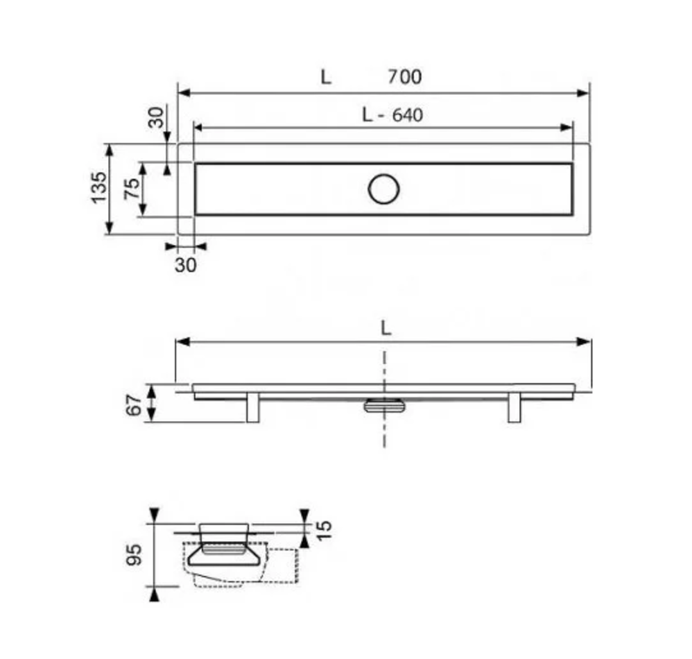 Душевой лоток TECE TECElinus, 15100079, 70 см с решеткой straight