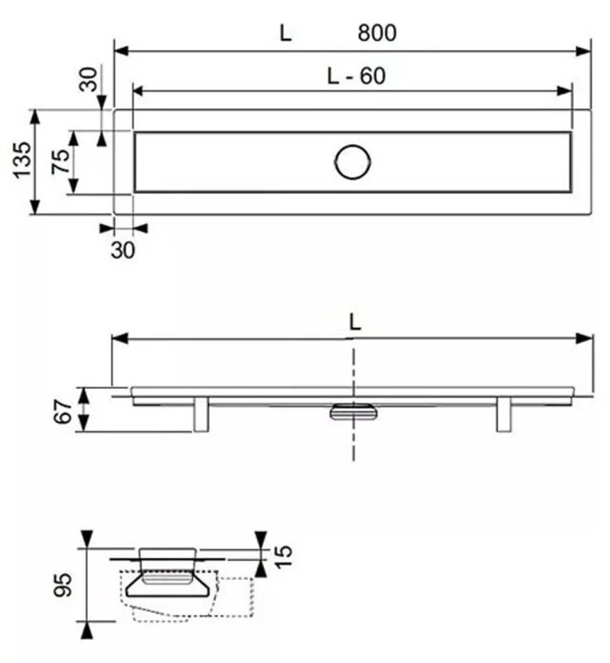 - cифон DN 50, выход вбок, производительность (согласно DIN EN 1253) при уровне воды 10/20 мм над решеткой: 0,7/0,8 л/с;