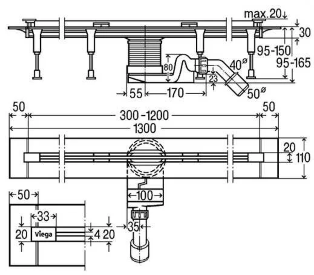 Душевой лоток Viega Advantix Vario 686277 под щелевую дизайн-вставку, подрезной от 30-120 см