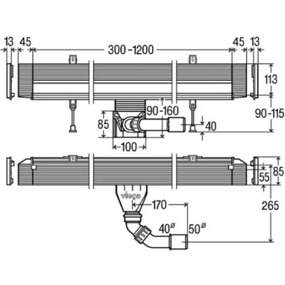 Душевой лоток Viega Advantix Vario 736552 под щелевую решетку, пристенный, подрезной от 30-120 см, высота сифона 8,5 см