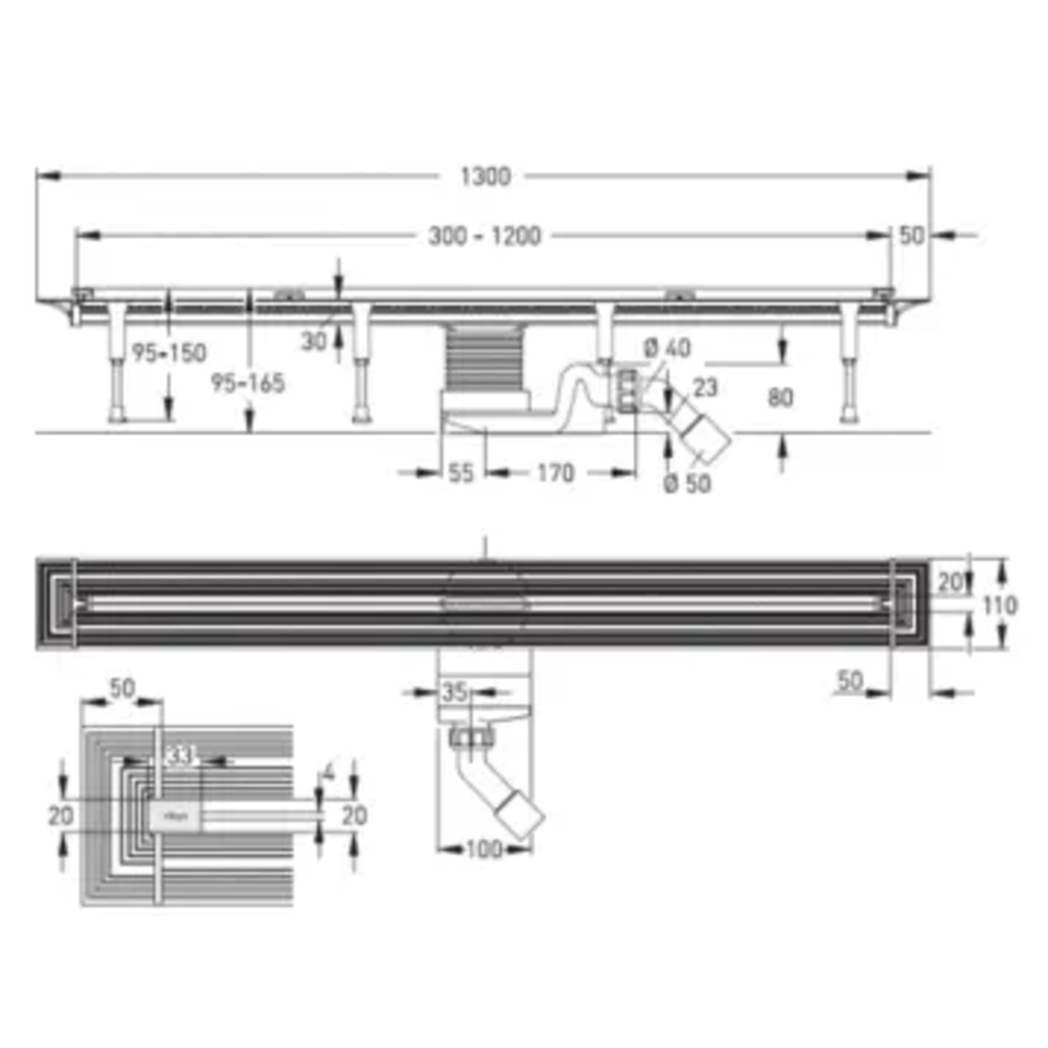 Душевой лоток Viega Advantix Vario Set 704353 с щелевой вставкой матовый хром и опорами, подрезной от 30-120 см