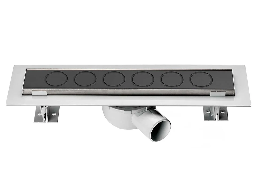 Комплектация: поворотный сифон 360 градусов из ABS-пластика, водонепроницаемые уплотнительные кольца, решетка из нержавеющей стали 1.5 мм, дренажный канал из ABS-пластика, противозапаховый затвор, водонепроницаемая мембрана, рамка из нержавеющей стали, комплект регулируемых по высоте опор, пластиковый сервисный ключ, регулировочный винт из нержавеющей стали, регулировка соединения.