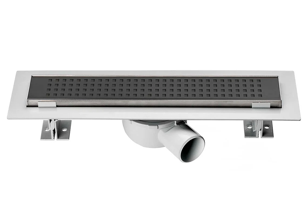 Комплектация: поворотный сифон 360 градусов из ABS-пластика, водонепроницаемые уплотнительные кольца, решетка из нержавеющей стали 1.5 мм, дренажный канал из ABS-пластика, противозапаховый затвор, водонепроницаемая мембрана, рамка из нержавеющей стали, комплект регулируемых по высоте опор, пластиковый сервисный ключ, регулировочный винт из нержавеющей стали, регулировка соединения.