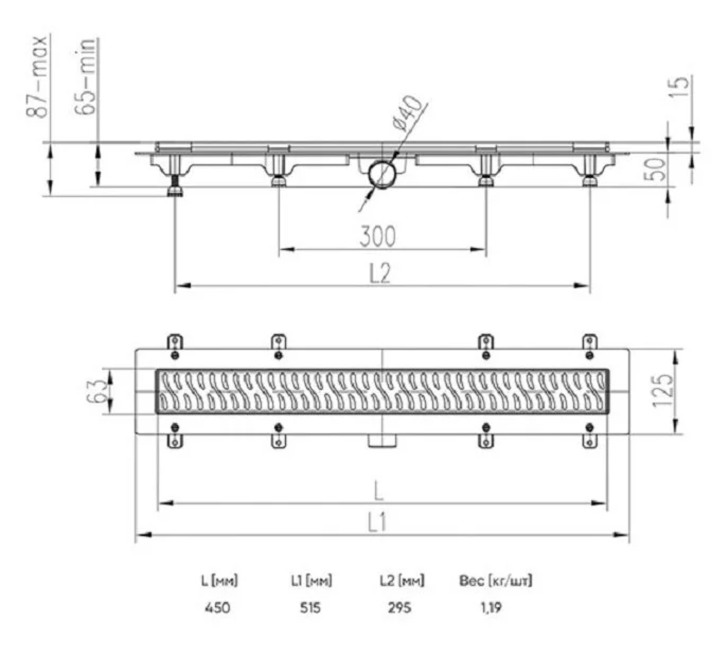 - Душевой лоток с решеткой