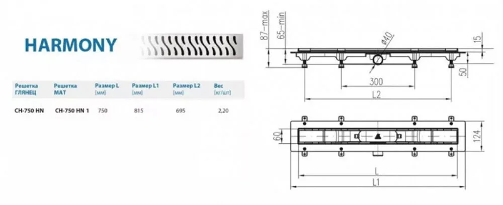 Водоотводящий желоб Azario Harmony 75 см c рамкой из нержавеющей стали, хром глянцевый, AZCH750HN