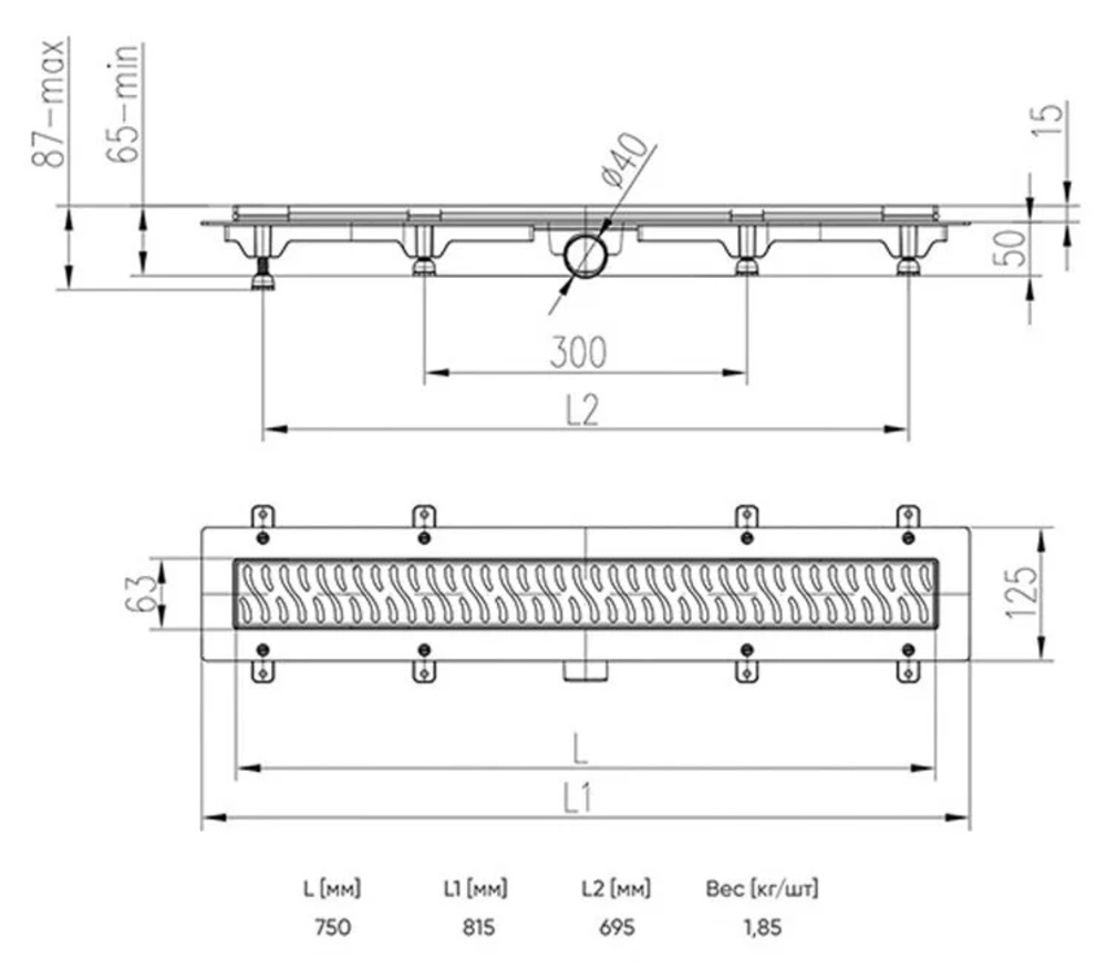 - Размер решетки: 75 x 6.3 x 6.5 см