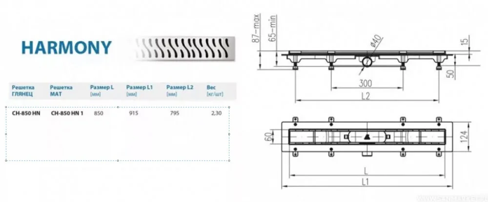 Водоотводящий желоб Azario Harmony 85 см c рамкой из нержавеющей стали, хром глянцевый, AZCH850HN