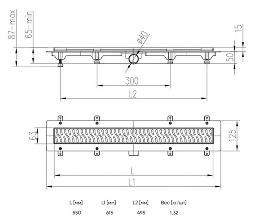- Размер решетки: 55 x 6.3 x 6.5 см