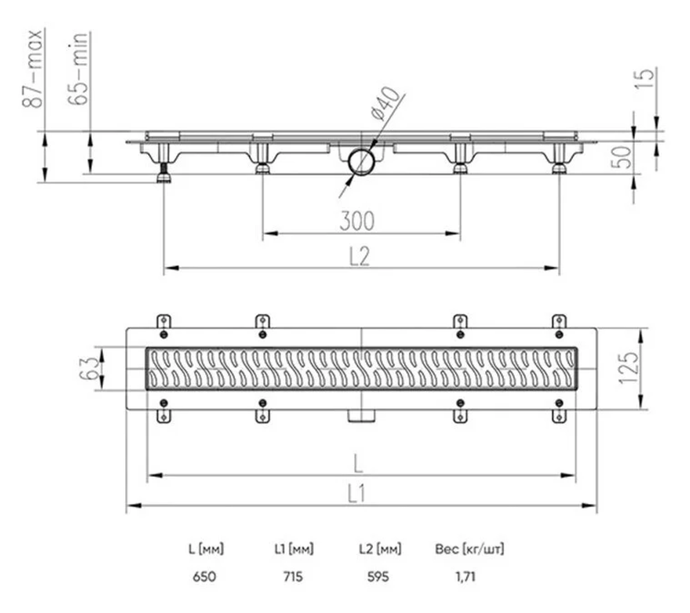 - Размер решетки: 65 x 6.3 x 6.5 см