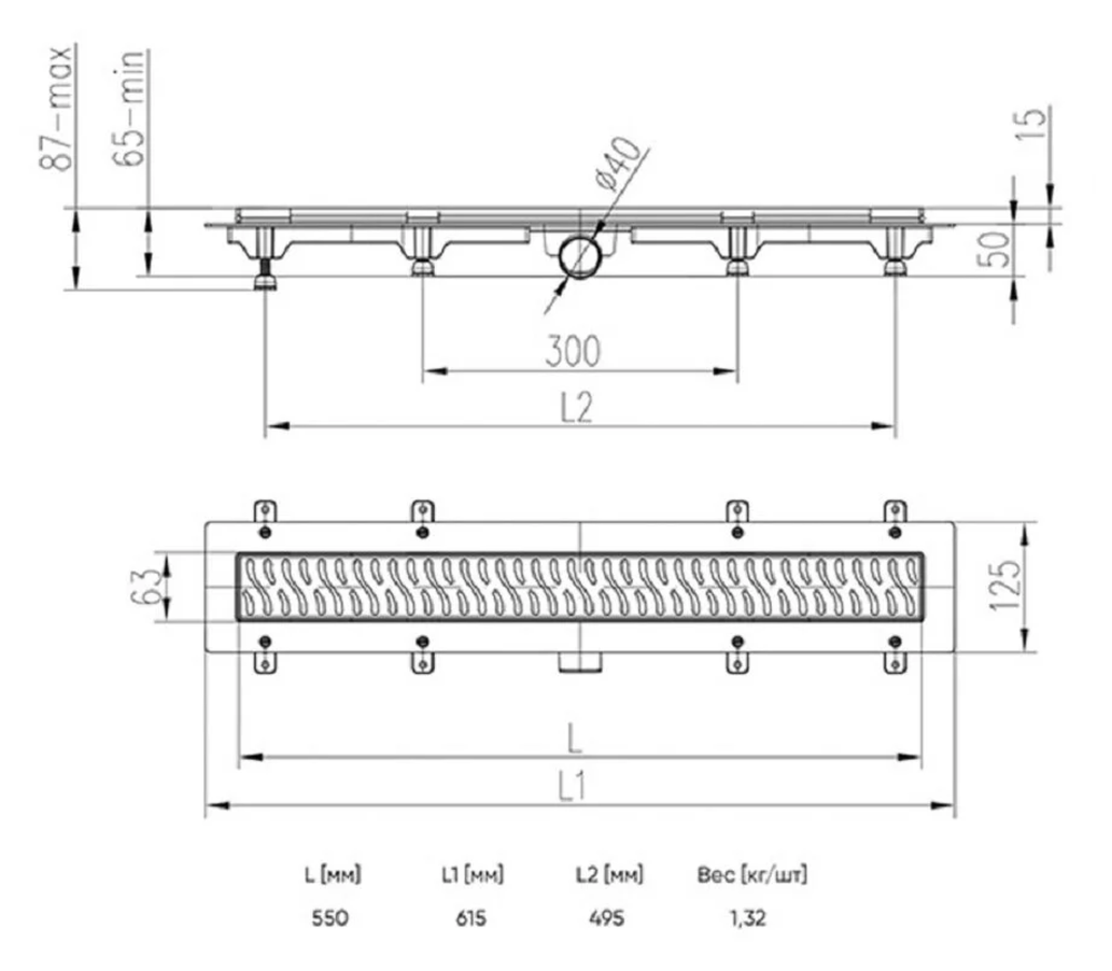 - Размер решетки: 55 x 6.3 x 6.5 см