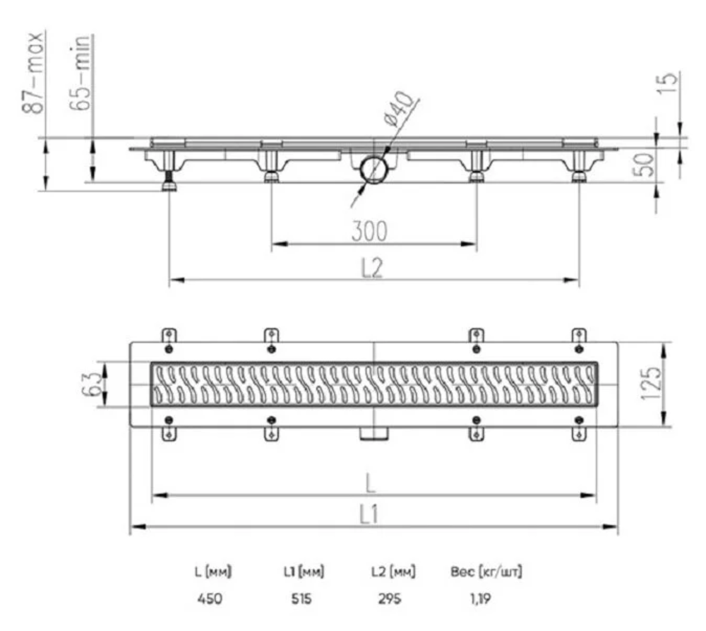 - Размер решетки: 45 x 6.3 x 6.5 см