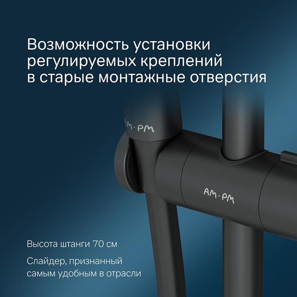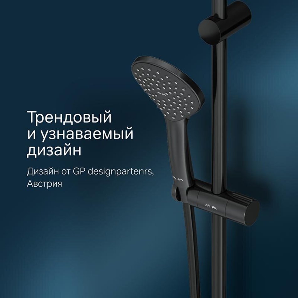 Душевой гарнитур Am.Pm Like F0180022, 3 режима лейки, цвет черный матовый