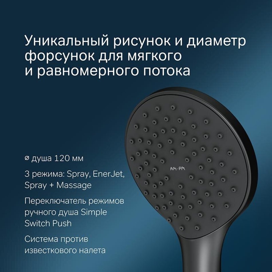 Душевой гарнитур Am.Pm Like, 3 режима лейки, цвет черный матовый, F0180022